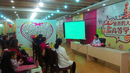 青岛新阳光妇产医院的孕妈咪课堂上,20多位准爸妈一起认真聆听资深产科专家房文英主任讲解《母乳喂养技术及哺喂方式》的精彩讲座。房主任先给孕妈咪讲解母乳喂养对于宝宝和母亲的好处,倡导母乳喂养,摒弃奶粉喂养。接着给大家讲解母乳喂养正确的方式方法,怎样提前将乳房保护好。以及在喂养过程中遇到的困难,要如何处理等等。