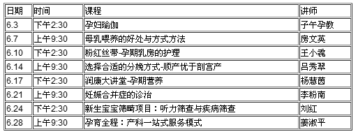 新阳光妇产医院6月份孕妇学校课程表