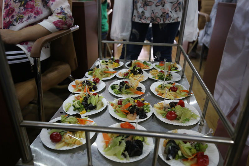 首先由新阳光妇产医院产科主任姜淑平教授为大家带来精彩讲座《四维彩超及孕期营养健康》。姜教授根据不同孕周胎儿特点,讲解了彩超筛查的重点及侧重的营养膳食。开心宝贝家政服务有限公司李沧分公司的高级营养师、金牌月嫂也结合顺产、剖宫产、产褥期的不同身体状况,分别制定适合的月子餐种类。同时指出产褥期间应该避免食用哪些食物。现场的准爸妈们纷纷拿出纸笔记录,并根据自己的身体状况进行咨询,老师无不详细讲解。活动现场,我们还为准妈妈们准备了丰富的月子餐,如利用农家散养的山鸡、铁棍山药、栗子、红枣、胡麻油熬制的鸡汤,利用绿色木耳、胡麻油、山药、枸杞炒制的菜肴,准妈妈尝后赞不绝口,不仅拍照留念,还仔细询问厨师制作方法,表示回家要试一试。