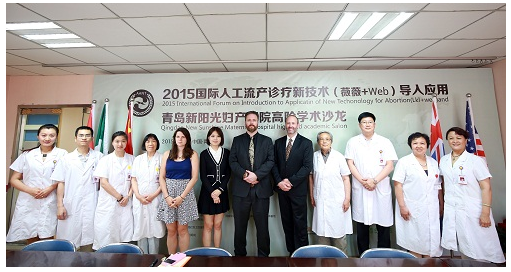 6月28日,2015 人工流产诊疗新技术(薇薇+web)导入应用新阳光高阶学术沙龙在青岛新阳光妇产医院举行,加拿大医学交流学会海外联络部长查尔斯先生(Charles Turner) 、美国华盛顿州立大学医学博士詹森先生(Dr. Jason L. Schick)、 加拿大麦吉尔大学泡琵女士(Poppy)、美国肯尼索州立大学克里斯汀女士(Kristen)等多国妇产医疗界专家学者参加了沙龙活动,“岛城BBT自凝刀第一人”杨培玲教授、“万例手术无事故专家”田志英教授、原青岛第八人民医院产科主任吕秀翠教授等也出席了沙龙活动。