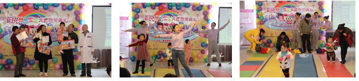 颁奖盛典在搞笑激昂的《小苹果》开场,小朋友们随着早教老师的节奏手舞足蹈,引起爸爸妈妈的阵阵掌声、笑声。出席本次颁奖盛典的嘉宾青岛著名儿科专家、新浪网儿童保健客座教授尹振尧主任、岛城万婴接生圣手姜淑萍教授、新阳光妇产医院护理部主任等。经过为期半个月的网络角逐,共产生阳光·雅智宝宝6名、阳光·启智宝宝3名、阳光·赋智宝宝2名、阳光·睿智宝宝1名。这12名阳光宝宝不仅获得精美的益智玩具,还获得了价值168元的阳光宝宝新年台历一份。