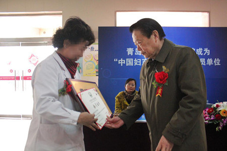 原国家卫生部副部长殷大奎教授为青岛新阳光妇产医院成为“中国妇产科医院联盟”会员单位授牌