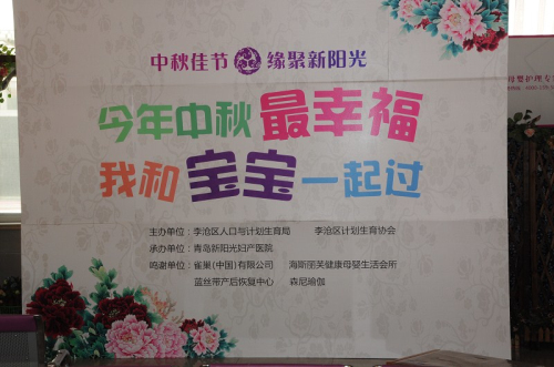 中午11:30,2013年,“中秋佳节,缘聚新阳光准妈妈联谊会”活动圆满结束,参加联谊会的妈妈每人得到了青岛新阳光妇产医院送出的惊喜大礼包,其中包括享免费无痛自然分娩;价值900元、四维彩超半价券;价值240元、免费获得孕期胎心检测2次(使用 先进胎心检测仪)价值:60元、免费获得产前检查3次(价值:36元)、婴儿游泳3次(价值:204元)等价值1000-3000元不等的奖品。