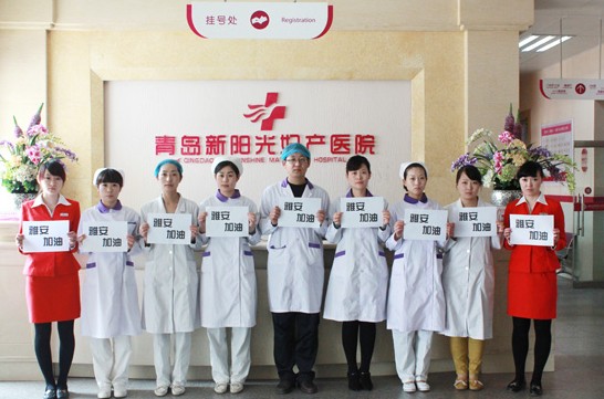 青岛新阳光妇产医院全体医务人员与灾区人民在一起,为雅安人民祈福,愿逝者安息,生者平安。