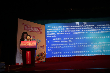 青岛新阳光妇产医院院长李汝斌发表了热情洋溢的欢迎辞,她指出,最美炫“腹”时刻·阳光魅力孕妈咪肚皮彩绘SHOW活动一经启动,数百名孕妈咪踊跃报名,经过严格的筛选,认真的排练,最终有12位孕妇模特参加此次的彩绘走秀,其中孕期最短的为5个月,孕期最长的已经达到8个多月。看到她们脸上洋溢着幸福的笑容,更坚定了我们在母婴事业上奋勇前进的信心。