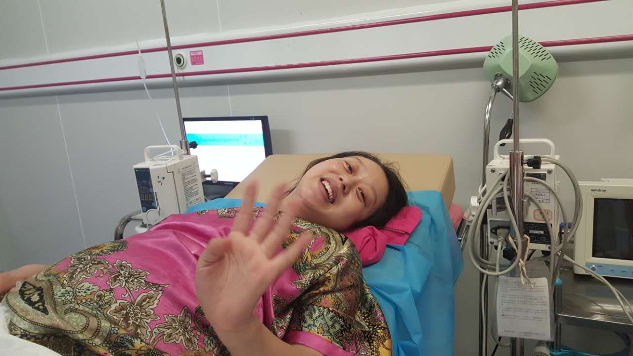 产床上,陈女士微笑着看着镜头,她的老公忙前忙后的给漂亮的老婆拍各种照片。青岛新阳光妇产医院产科主任姜淑平跟陈女士讲,你是我从业30年来见过的为数不多的,敢笑着生孩子的妈妈,你真的太勇敢了!