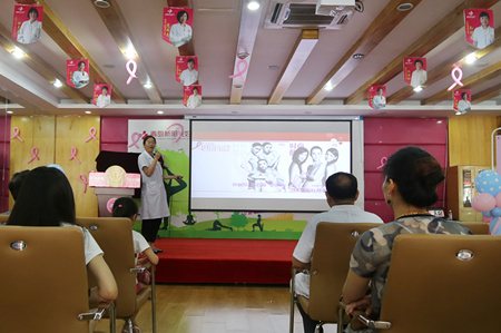 8月7日上午9点30分,由青岛新阳光妇产医院主办的粉红丝带(青岛站)关爱乳腺健康公益活动在学术报告厅如期举行,100余名育龄女性参加了本次活动,本次活动由乳腺彩超免费检查、乳腺健康知识讲座、学习乳房保健操三部分组成。