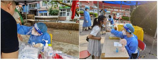 7月5日,我院接到李沧区卫健局命令要在7月7日—7月9日连续三天派出医护人员参加李沧区核酸采样任务。时间紧、任务重,防疫工作不容有失,青岛新阳光妇产医院和书院路新阳光社区卫生服务中心领导班子迅速响应,紧急安排部署,抽调30名医护人员,从7月7日早6点开始分批次奔赴李沧区各街道开展区域核酸检测工作。