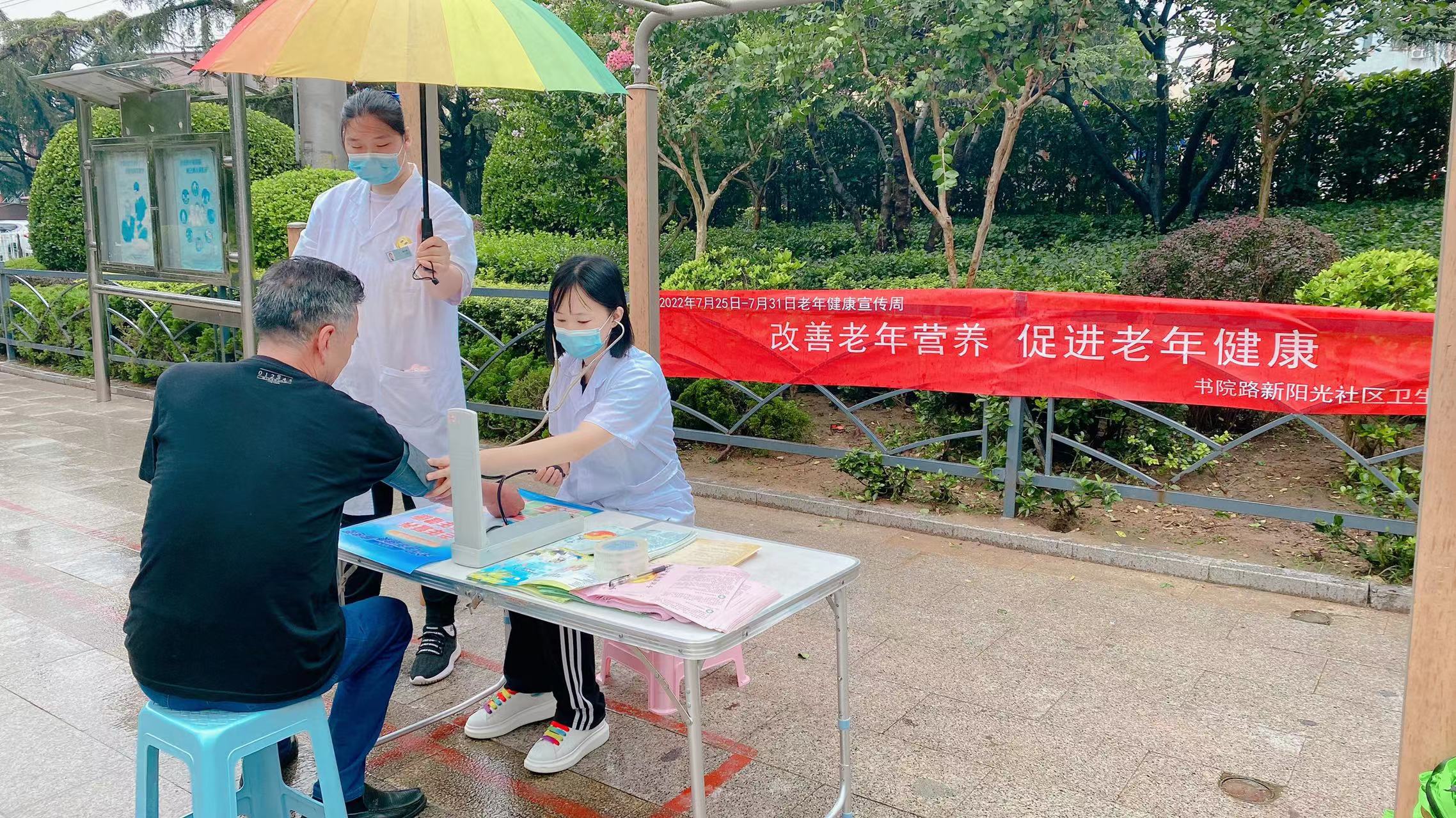 结合老年人的实际需求,围绕老年营养健康主题,本中心在7.25日上午在小西湖广场对社区居民进行老年健康宣传周活动的宣传,通过悬挂横幅,派发宣传册,测量血压等多种方式,开展了线下宣传推广活动,张贴老年健康的主题海报,在确保疫情防控安全的基础上,对社区居民进行了老年健康的宣传,重点宣传老年健康政策、老年健康科普知识和老年营养健康知识,引导老年人形成营养健康的生活方式,营造敬老爱老的良好社会氛围。