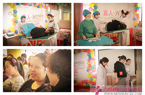 3月29日,在青岛新阳光妇产医院住院部大厅,热闹非凡的上演着一场全方位逼真的“分娩预演”,来自青岛市各区的60多对准妈妈和准爸爸正认真观看着自然分娩过程,分享生产背后的艰辛与快乐。